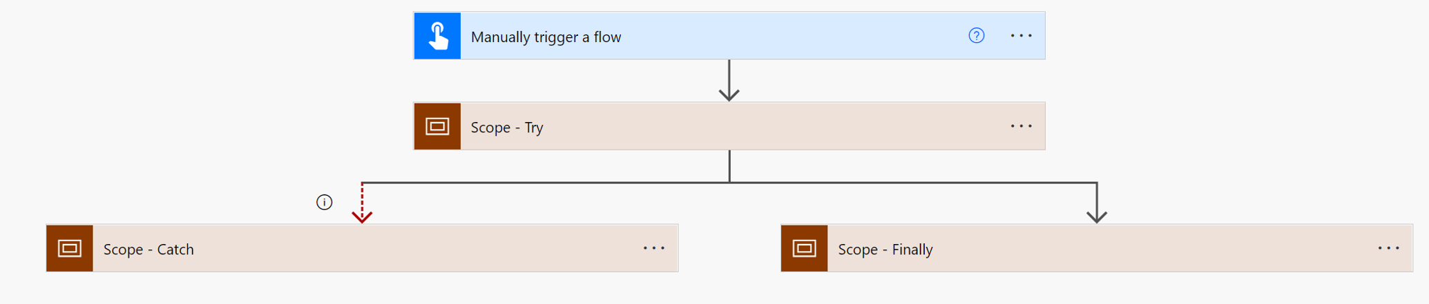 - Scope – Finally: the flow will go through this scope since “Scope – Try” haven’t thrown exceptions