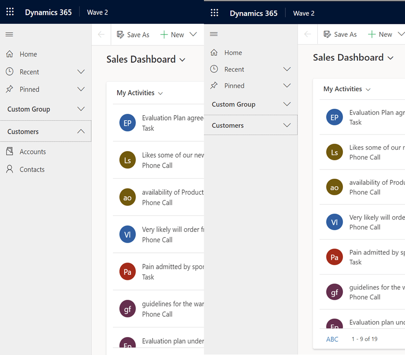 The user can configure the navigation bar behavior. It will be possible to set up what options will be shown and whether the groups can be collapsed or expanded. Also, the options like Home, Recent, and Pinned can be enabled or not.